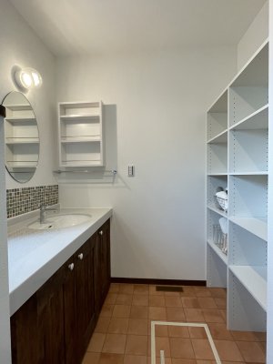 🍀洗面室はお洒落なタイルを貼ったオリジナル洗面台