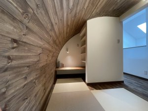 🍀2階には書棚やカウンターもあR壁の《こもれるヌック》