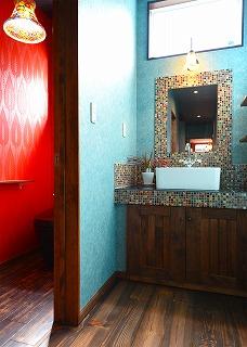 施工実例 いわき市 K様邸 ☆彡~~ 色彩の洋館 ~~☆彡 ギャラリー 玄関ポーチ 玄関ホール リビング1 リビング2 ダイニング1 ダイニング2 廊下~階段 造作洗面台 DOGスペース 主寝室1 主寝室2 子供室 トイレ 施工実例に戻る
