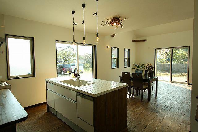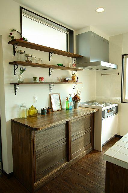 ◆タイルで仕上げた手づくりのアイランド型キッチン