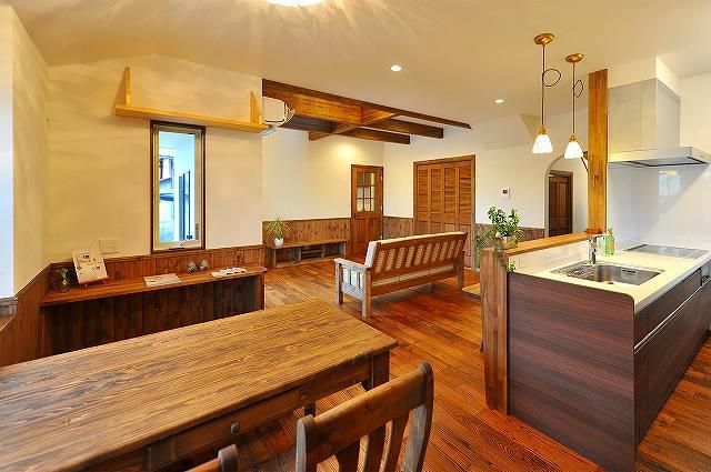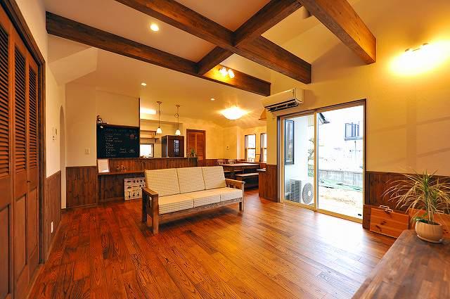 ~梁現し、アンティーク仕上げの栗のフロアーで自然素材たっぷりの空間~
