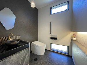 ⑤作家さんお手製の手洗い鉢にもご注目!玄関入ってすぐの広々レストルーム
