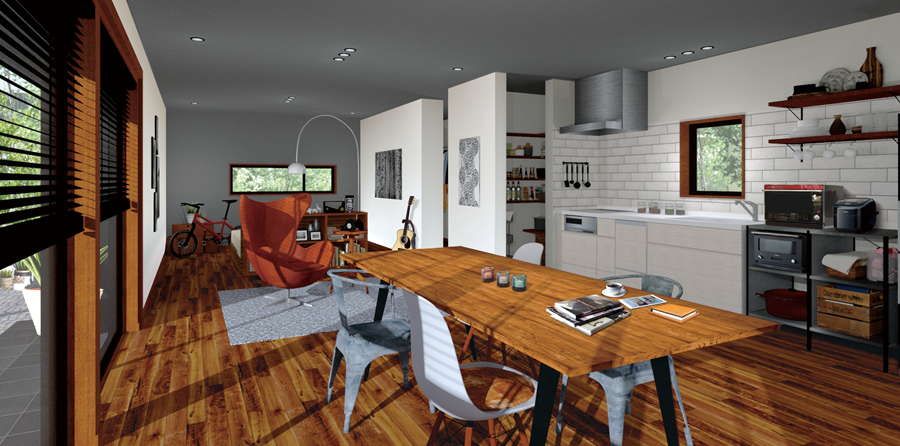 収納や水廻り以外に間仕切り壁をなくし、家具の置き方ひとつで