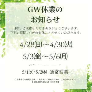 2024年 GW休業のお知らせ