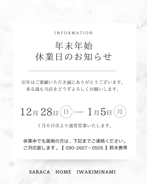 2026 年末年始休業のお知らせ