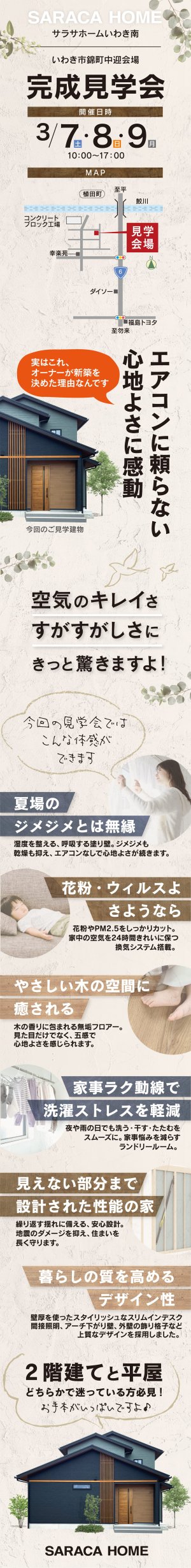 いわき市錦町中迎で、3/7・8・9の3日間、完成見学会を開催致します。
